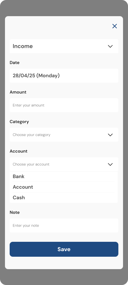 Record daily income and expenses easily. Stay on top of where your money goes.